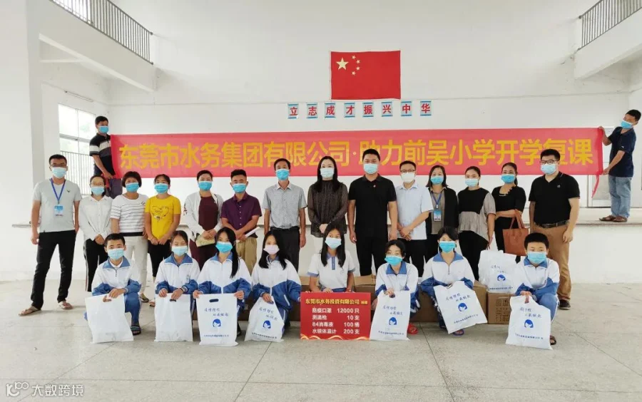 为深入了解定点扶贫工作情况,同时助力学校师生安全顺利开学,2020年5月22日上午,东莞市水务投资有限公司(以下简称“市水投公司”)副总经理李捷等人一行冒雨赴揭阳市惠来县靖海镇前吴村开展扶贫调研工作,并同步开展“防疫复课皆不误,返校开学春光好”主题活动,向该贫困村前吴小学无偿捐赠防疫口罩12000个、84消毒液100桶等价值2.3万元防疫物资,支援学校防疫工作,助力学校开学复课。靖海镇党委委员蔡桂庆、前吴小学校长蔡镇雄参加。