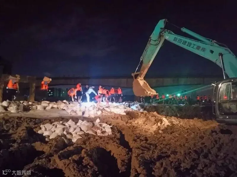发现险情后,我集团立即组织抢险,并将险情报告有关部门以及社区居委会,安全转移河堤沿线居民。工地内的挖机、装载机、推土机等机械立即进入现场,快速加高围堰,并掌握有利时机,调运沙石填筑基坑,不断加高加固围堰。