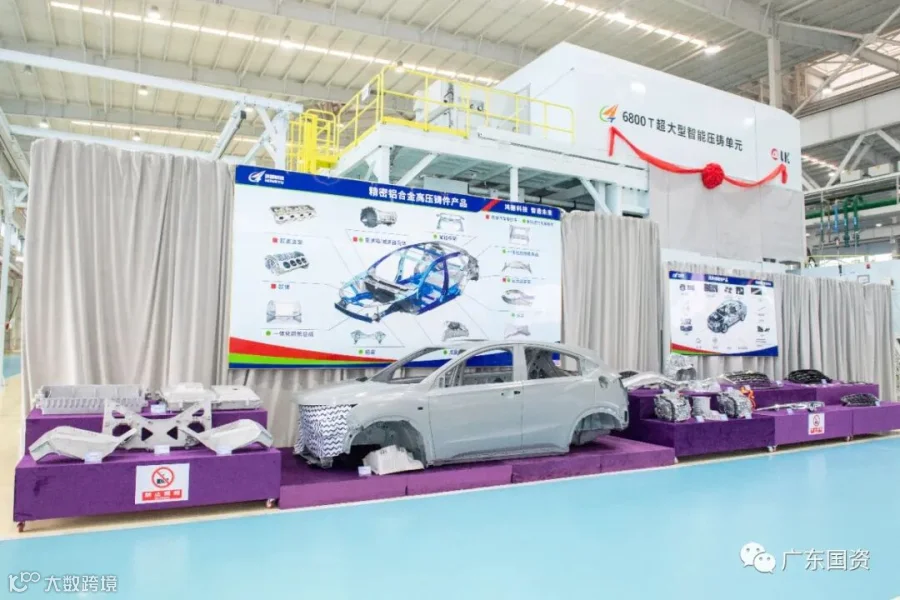 ▲粤科金融集团旗下控股上市公司广东鸿图参与研发的首台国产6800吨超大型智能压铸单元正式投产