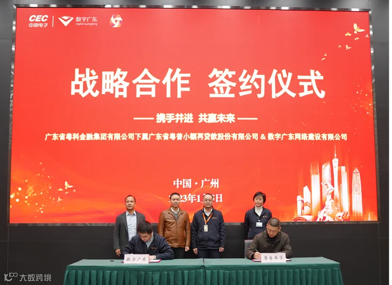 近日,粤科金融集团旗下广东省粤普小额再贷款股份有限公司与数字广东网络建设有限公司举行战略合作协议签署仪式。集团党委委员、副总经理刘朝阳,数字广东副总经理谭峻峰出席签约仪式并致辞,粤普再贷董事长刘卫东、数字广东厅局服务一部总经理高晶代表双方签约。