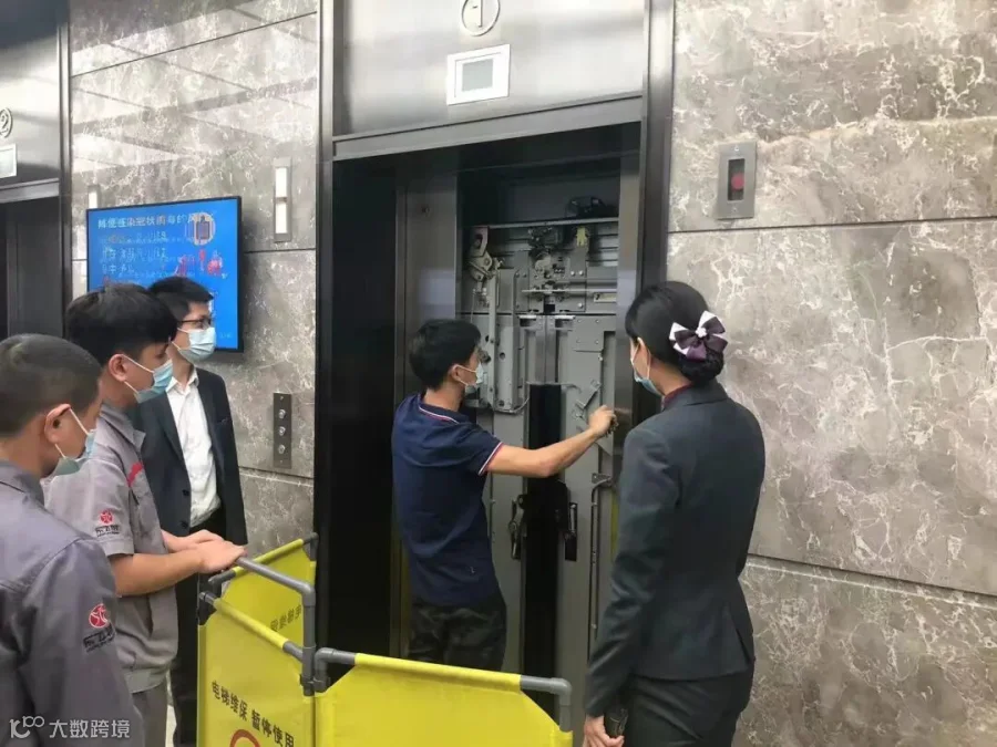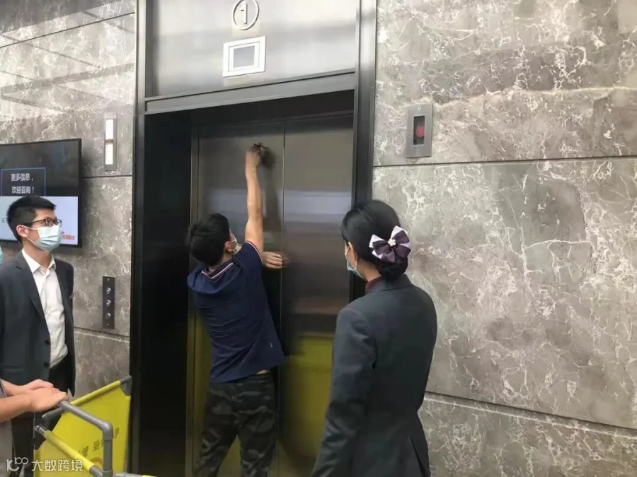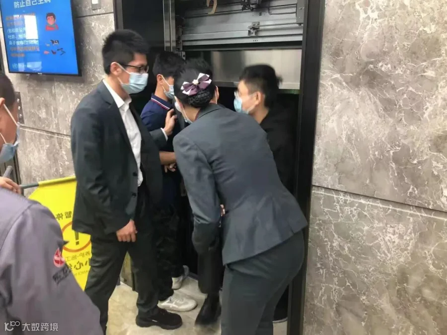 电梯维保单位人员确定困人的电梯被卡位置,并对 " 故障 " 原因进行排查。通过断电、松闸等一系列专业操作后,故障及时消除,物业工程人员顺利解救出被困人员。被困人员成功救出后,物业客服人员第一时间对“被困人员”进行安抚。同时物业工程人员详细为“被困人员”讲解电梯发生事故时的注意事项和自救措施。