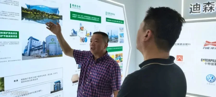 经李祖芹董事长指引,参访的最后一站是迪森的企业形象展厅。在这里,李祖芹董事长详细介绍了迪森28年来的企业奋斗史以及业务发展情况。