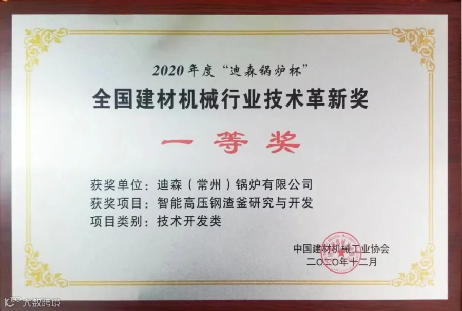 2020中国建材机械工业协会七届二次理事(扩大)会议暨第八届建材机械行业发展论坛近日在湖南长沙召开。迪森(常州)锅炉有限公司荣获“2020年全国建材机械行业技术革新奖一等奖”与“公益企业”两项大奖。