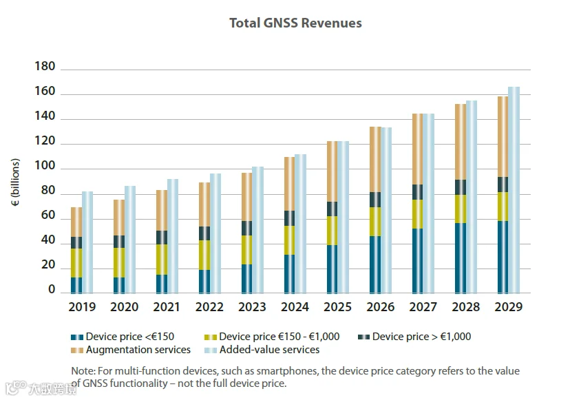 全球GNSS设备装机量将从2019年60亿台增长至2029年100亿台,90%以上为手机和可穿戴设备等消费类设备。