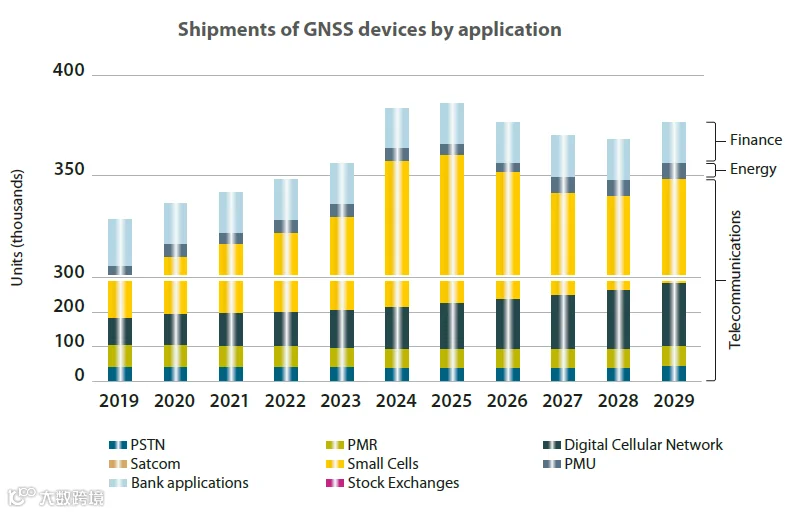 其中,电信市场中的小基站增长需求在2025年会放缓,但在5G应用的推动下,GNSS授时同步设备出货量在电信市场的仍保持1.5%的复合年增长率。