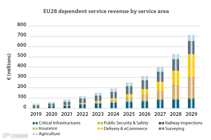 目前收入最高和服务商最多的还是集中在监测和农业应用,但无人机快递,保险,测绘等会成为主要增长来源。