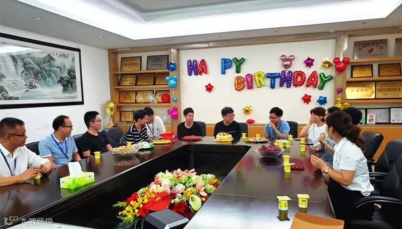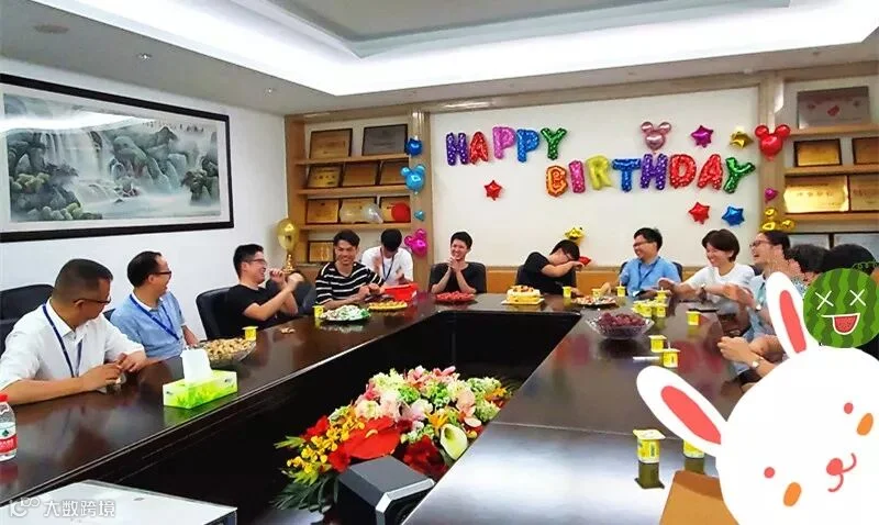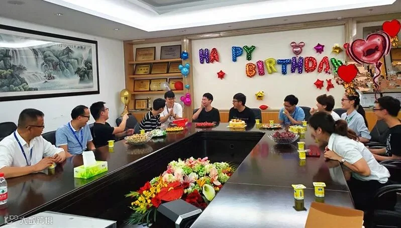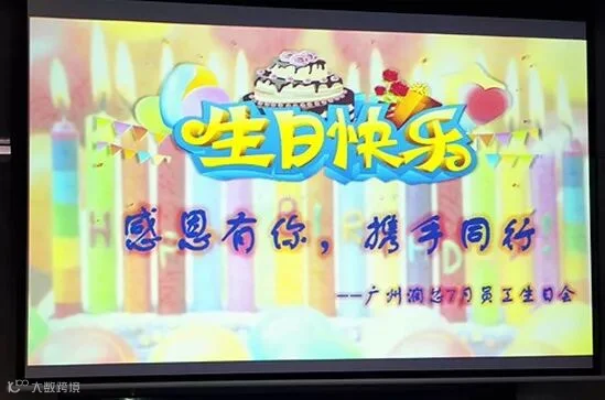 生日会上,每位寿星邀请一位同事作为亲友团,与他们共享生日的喜悦:送祝福,玩游戏;许心愿,吹蜡烛;分蛋糕,享欢乐。大家欢聚一堂,共庆生日。