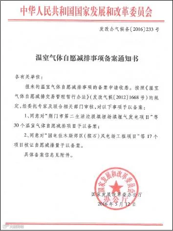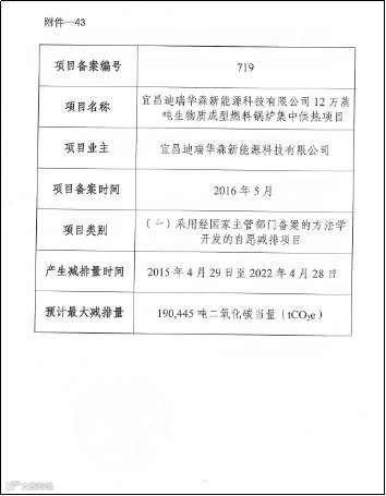 近日,由迪森股份控股子公司宜昌迪瑞华森新能源有限公司收到国家发改委的《温室气体自愿减排事项备案通知书》(发改办气候备[2016]233号),正式同意该司申报的12万蒸吨生物质成型燃料集中供热项目正式通过国家发改委项目备案,成为国家温室气体自愿减排项目。