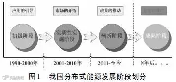 图1展示了目前我国分布式能源的三个发展阶段,待转折阶段顺利完成后即将进入成熟阶段。