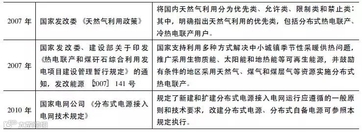 热电联产作为分布式能源的雏形,在上世纪80年代被国家计委列为重大节能措施项目之后开始发展。主要是地方小型热电项目,多以燃煤热电厂为主。从表1中所列一系列针对热电联产的政策可以看出,大多为宏观性鼓励政策,但其为后续热电联产市场的健康发展奠定了良好的基础。