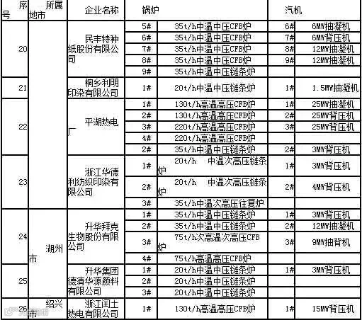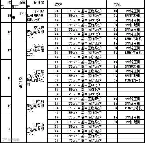 地方公用热电中温中压及以下参数机组清单