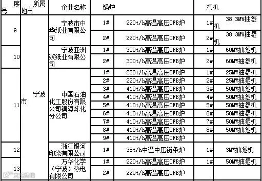 地方自备燃煤热电机组清单