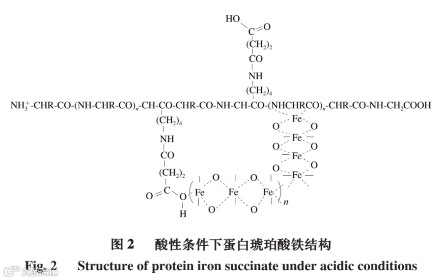 蛋白琥珀酸铁口服溶液以其特有的铁与琥珀酸蛋白结合形成的络合结构,使铁离子在胃中酸性环境下络合稳定,不会释放游离损伤胃黏膜,也不会产生铁腥味;在肠道,因pH值的升高,蛋白膜被胰蛋白酶消化,铁离子有序游离并转化为二价铁离子,在肠绒毛内被吸收而达到补铁效果。
