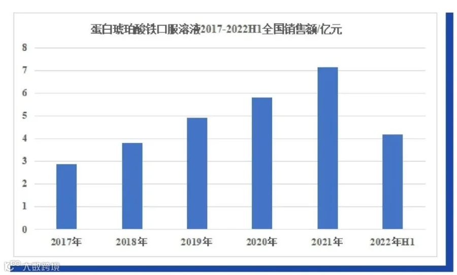 ▲图4 蛋白琥珀酸铁口服溶液2017-2022H1全国销售额