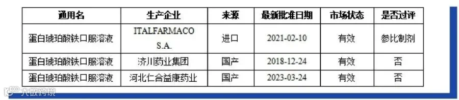 ▲表1 蛋白琥珀铁口服溶液国内已上市情况
