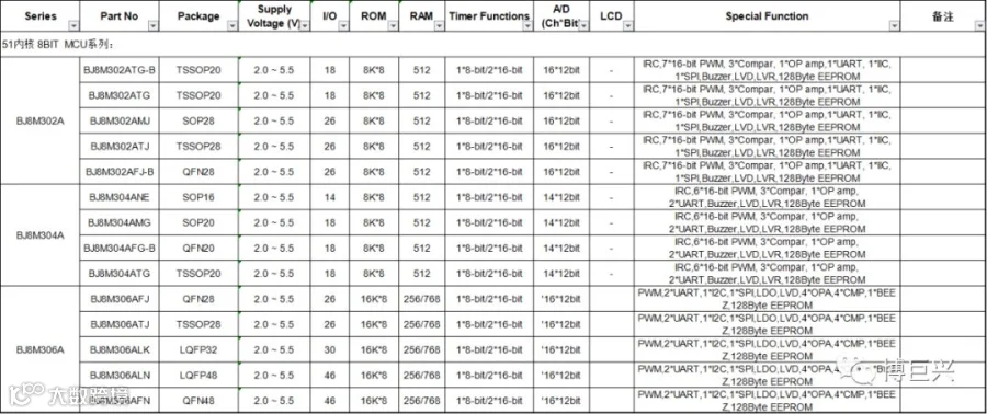 导读:51内核 8BIT MCU系列系列主推如下: