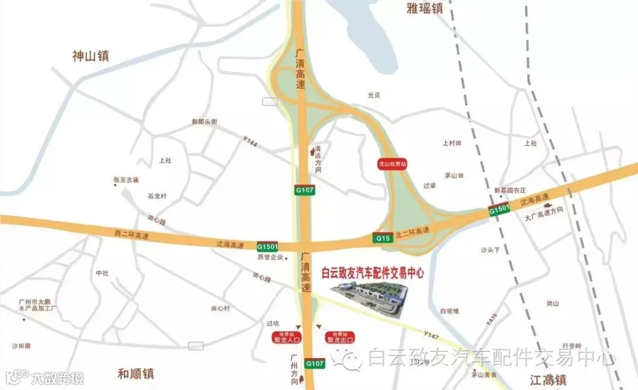 项目地点:广州市白云区江高镇茅山村),紧邻广清高速公路东侧,广清高速公路江高/聚龙出口,邻近北二环高速。