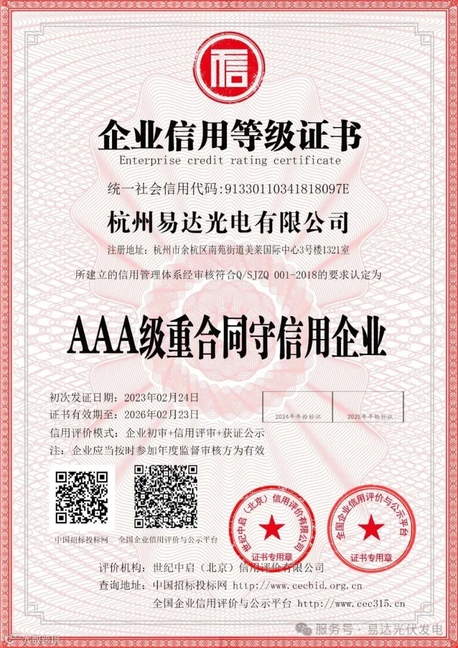 杭州易达光电有限公司的专利技术与认证资质,彰显了公司在技术创新、规范管理及商业信誉等方面的卓越实力,我们有信心、有能力为大家提供优质服务与可靠保障。