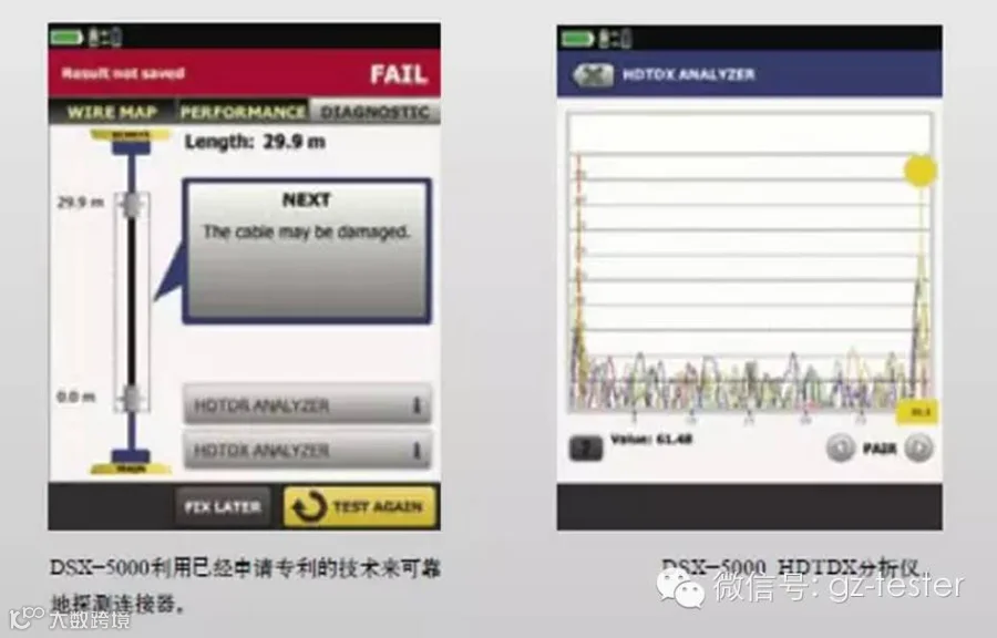 CableAnalyzer或电缆测试仪,生成“不合格”或“刚刚及格”(即所谓的“合格”结果)的布线链路诊断信息。
