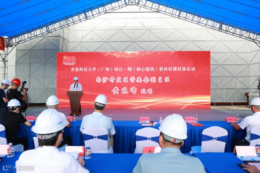 在庆祝建党一百周年和香港回归24周年之际,作为粤港深度合作重要项目之一的香港科技大学(广州)项目一期教科研楼顺利封顶,取得重大节点胜利!