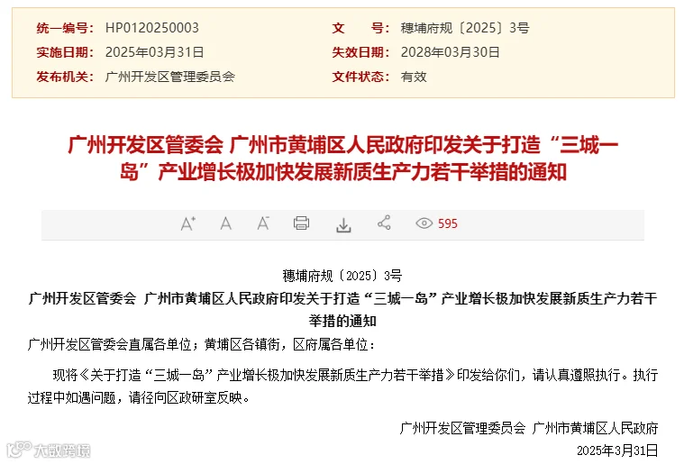 3月31日,广州开发区、黄埔区正式发布《关于打造 “三城一岛” 产业增长极 加快发展新质生产力的若干举措》(以下简称 “新质生产力30条”),推出30条覆盖投资、创新、产业、生态的硬核措施,聚力打造“三城一岛”产业增长极,激活全区经济高质量发展新动能新优势,构建发展新质生产力的“开发区模式”。政策内容图解如下。