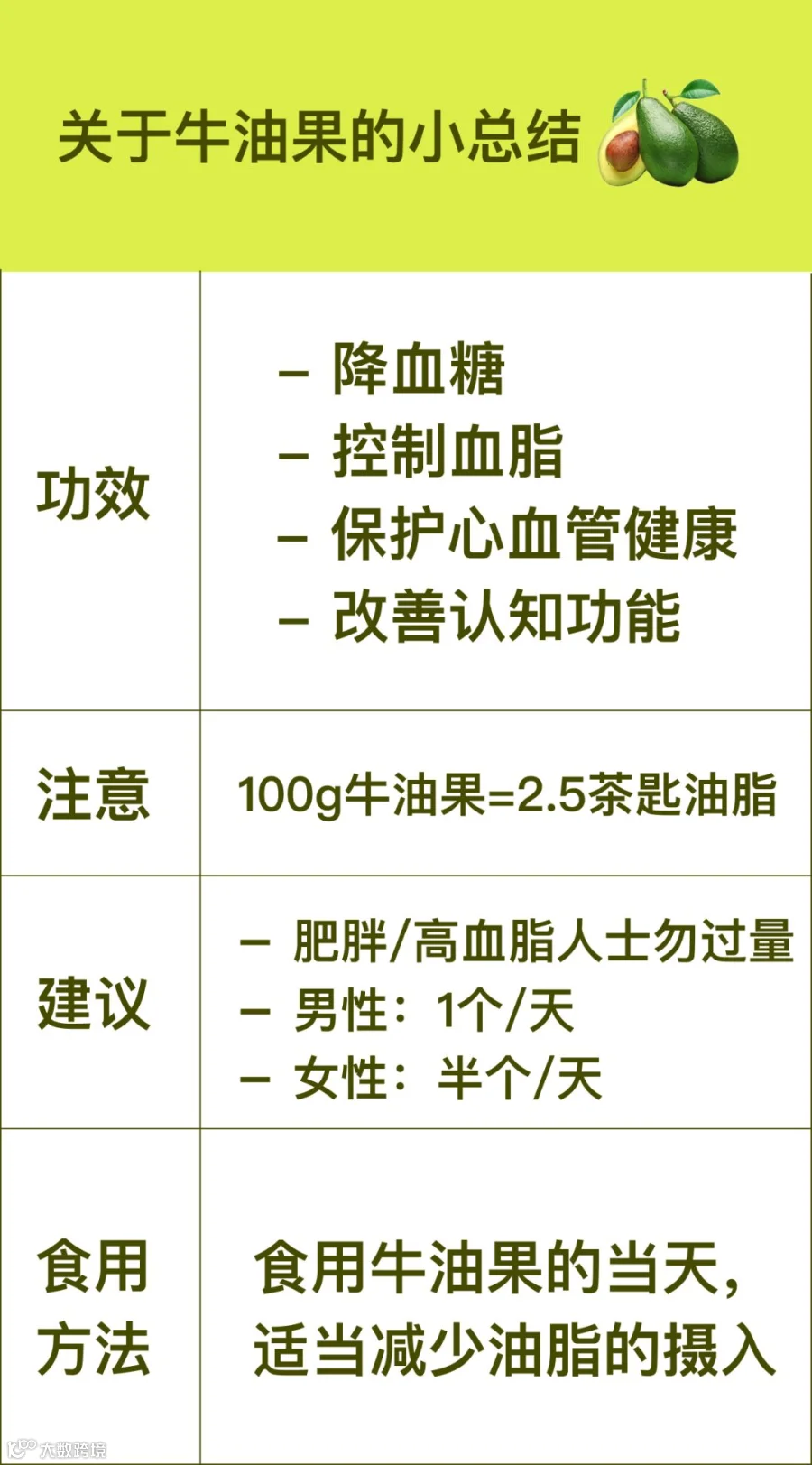 啊~牛油果君真的是极好的东西呢~好啦,以下是贴心的总结时间👇