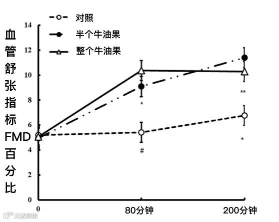实验证明,摄入牛油果还可以促进餐后流量介导的血管舒张反应,显著改善内皮功能 (图4)[3]。