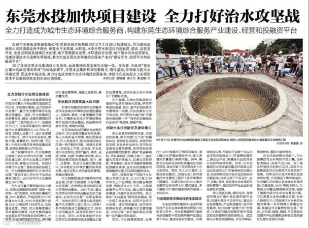 5月31日,《东莞日报》以题为《东莞水投加快项目建设 全力打好治水攻坚战》的文章专题报道东莞水投集团发展情况,现全文转载于此,以飨读者。