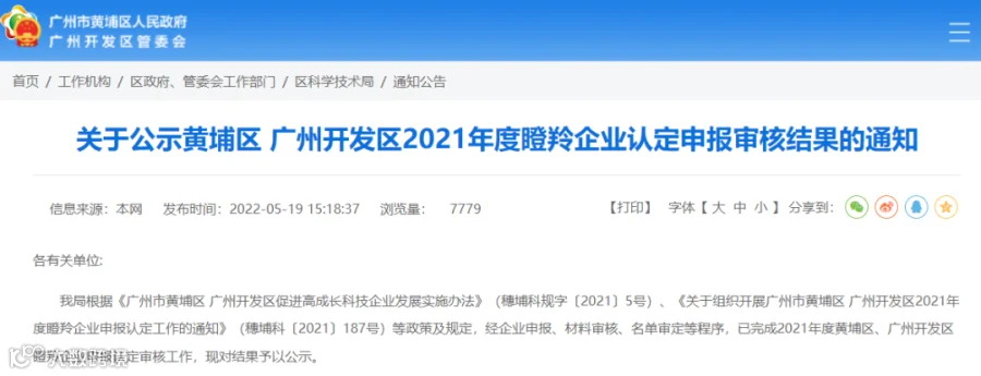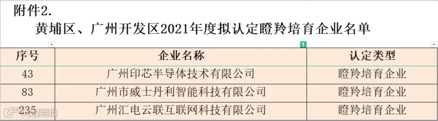 黄埔区 广州开发区2021年度瞪羚培育企业