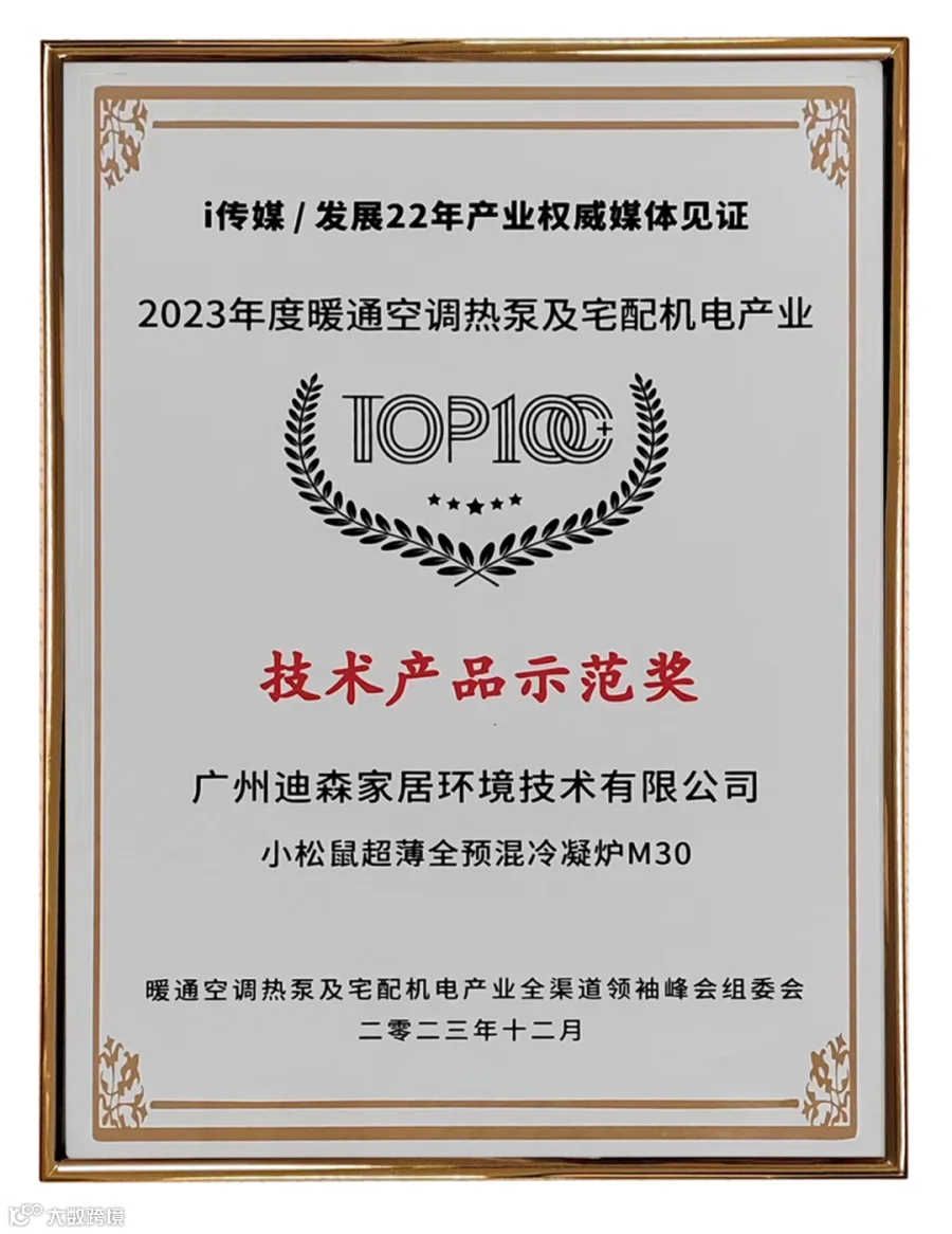 在本次大会期间,迪森旗下的小松鼠超薄全预混冷凝炉M30,凭借出色的产品性能以及环保节能,一举斩获“技术产品示范奖”。