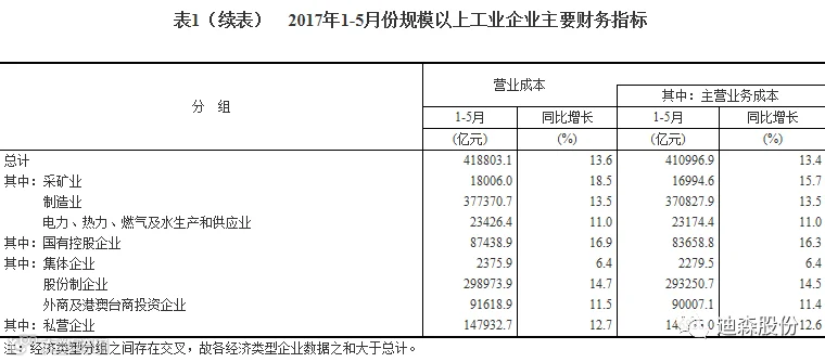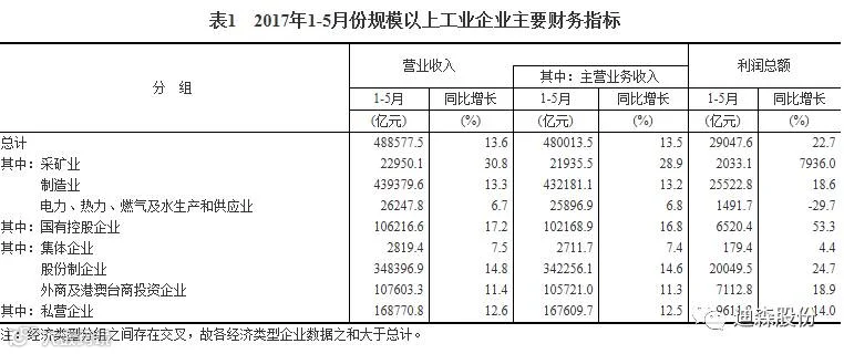 27日,国家统计局发布了2017年1-5月份全国规模以上工业企业利润统计分析,详情如下: