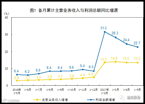 2017年1-5月份全国规模以上工业企业利润总额同比增长22.7%