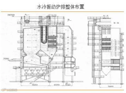 水冷振动炉排锅炉本体由四部分组成:炉膛、冷却室、过热器室和尾部竖井。