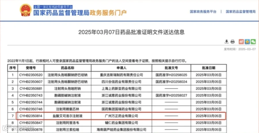 3月7日,广东国标医药科技有限公司协助广州万正药业有限公司盐酸艾司洛尔注射液通过国家药品监督管理局批准上市。点击阅读原文