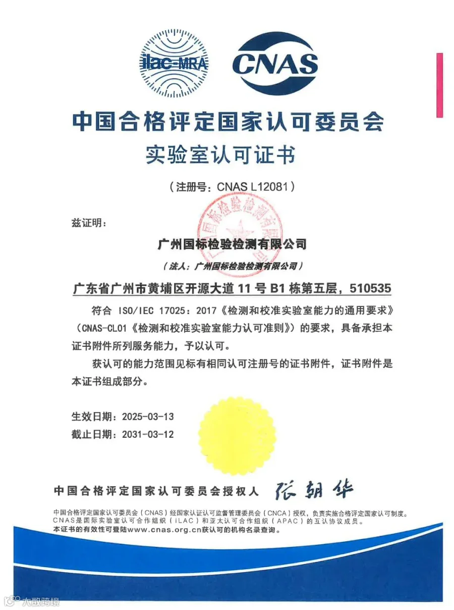 3月11日,公司通过中国合格评定国家认可委员会的换证评审,再次获得CNAS实验室认可证书(注册号:CNAS L12081)。点击阅读原文