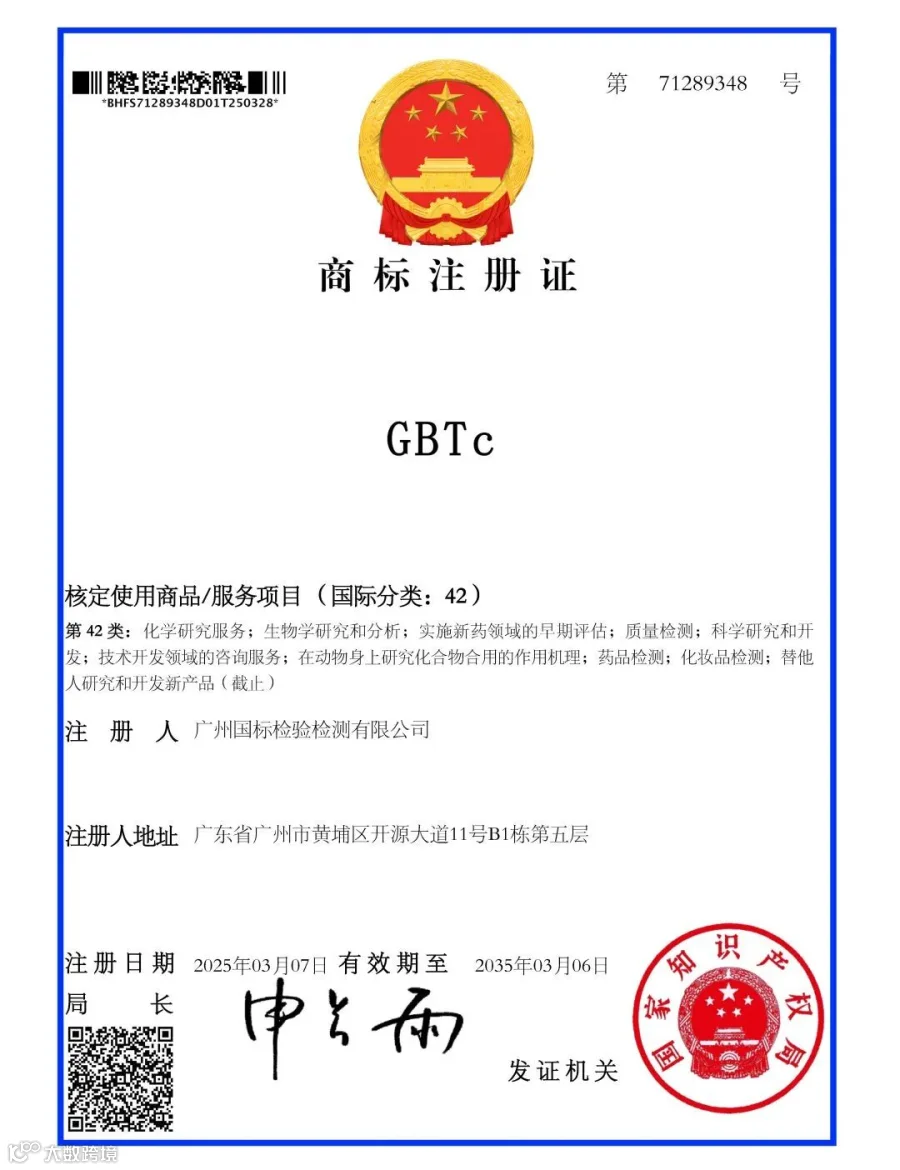 3月8日,公司商标“GBTc”(国际分类:42)获得国家知识产权局颁发的注册商标证书。点击阅读原文