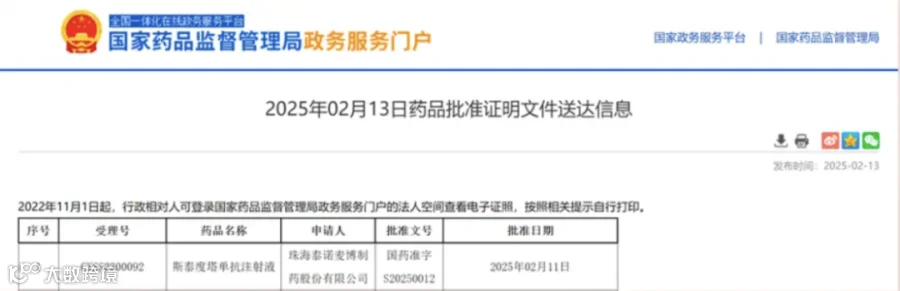 2月13日,广东国标医药科技有限公司协助珠海泰诺麦博制药股份有限公司斯泰度塔单抗注射液通过国家药品监督管理局批准上市。点击阅读原文