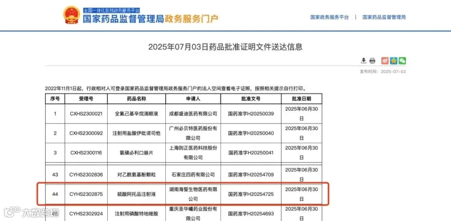 6月30日,广东国标医药科技有限公司协助湖南海誓生物医药有限公司硫酸阿托品注射液通过国家药品监督管理局批准上市。点击阅读原文