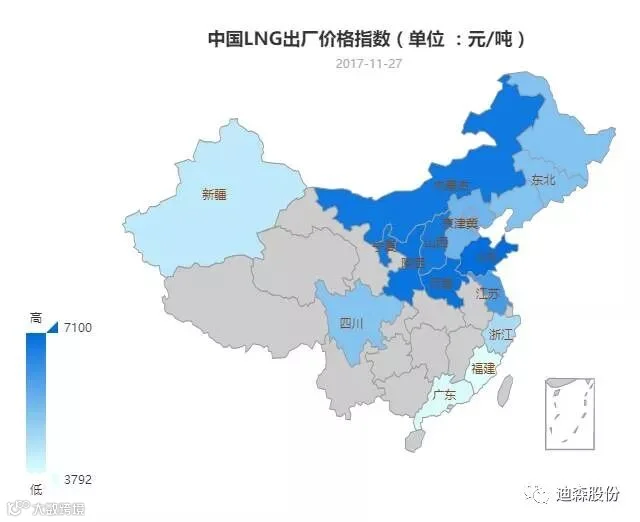 11月27日LNG迎来了13连涨,中国LNG历史价格疯狂之巅,出厂价格7500元/吨,为方便计算,假设1500的气化率,相当于5元/立方米。比柴油高1600元/吨,比LPG高2600-2900元/吨。上一次LNG价格超过7000还是在2005年,可谓是一夜回到解放前。