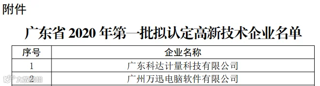附件:广东省2020年第一批拟认定高新技术企业名单