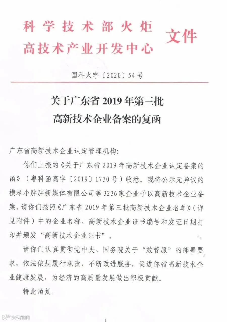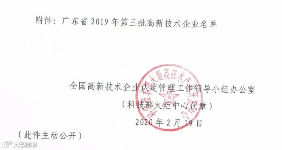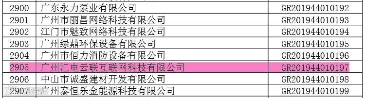 广东省2019年第一批至第三批认定的高新技术企业备案名单公示