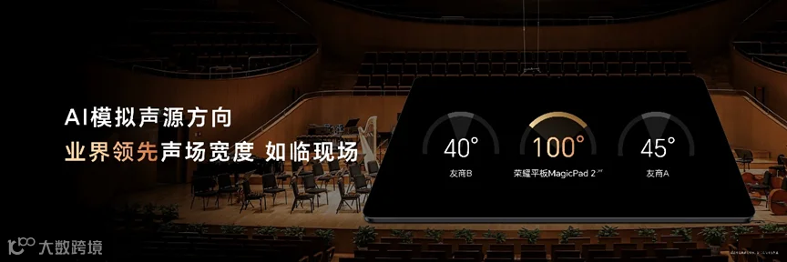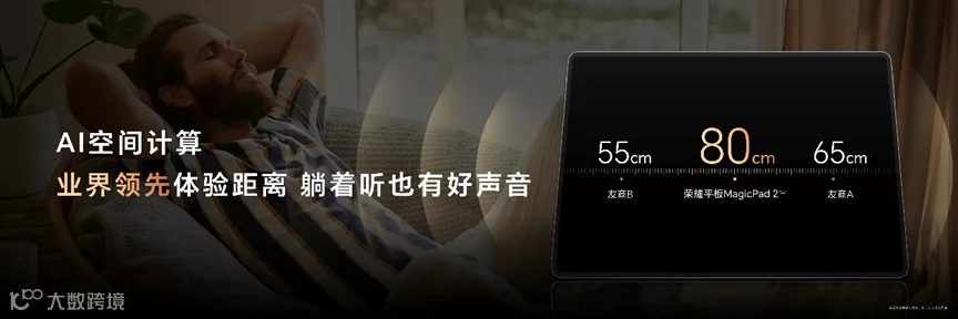 相较上代产品,荣耀平板MagicPad2的声场宽度达到100°,直线体验范围达到80cm。尤其在八扬声器系统的加持下,荣耀平板MagicPad2的音效表现远超同档产品,为用户带来沉浸式的听觉享受。