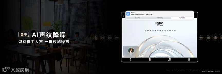 在AI技术的加持下,会议沟通、在线学习都能事半功倍。荣耀平板MagicPad2 搭载AI声纹降噪功能,能有效抑制背景噪声,让用户在嘈杂的环境中也能享受清晰的通话体验,提升会议质量。而先进的语音识别与处理技术,能够智能提取会议中的关键信息,生成会议纪要,极大提高会议效率。