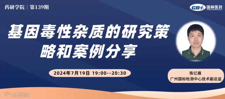 由广州国标与药研学院共同推出的第139期直播公开课《基因毒性杂质的研究策略和案例分享》将于明天7月19日(周五)19:00开播,预约即可免费观看。