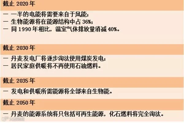 丹麦为其未来能源系统已制定了统一的规划和扶持计划。未来能源系统将涵盖海上风力发电、潮汐发电、陆上电动、混合燃料汽车、太阳能、地热能发电及储能。为推动目标的实现,丹麦政府将持续推出能源补助计划以及积极实现零弃风目标。丹麦执政党政府和反对党均一致支持丹麦的新能源发展计划,这为丹麦国内清洁能源的发展提供一个坚定的政策环境。除大力推广能源系统计划外,丹麦还正通过技术创新以及推广建筑节能规范等方式不断提供能效。