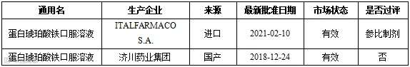 ▲ 表1 蛋白琥珀铁口服溶液国内已上市情况