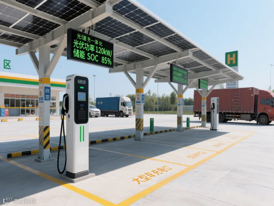 光伏电力过剩时,通过逆变器并入公共电网(获得电价收益);电网停电时,若配备储能,可作为应急电源为车辆充电(需符合防孤岛保护要求)。