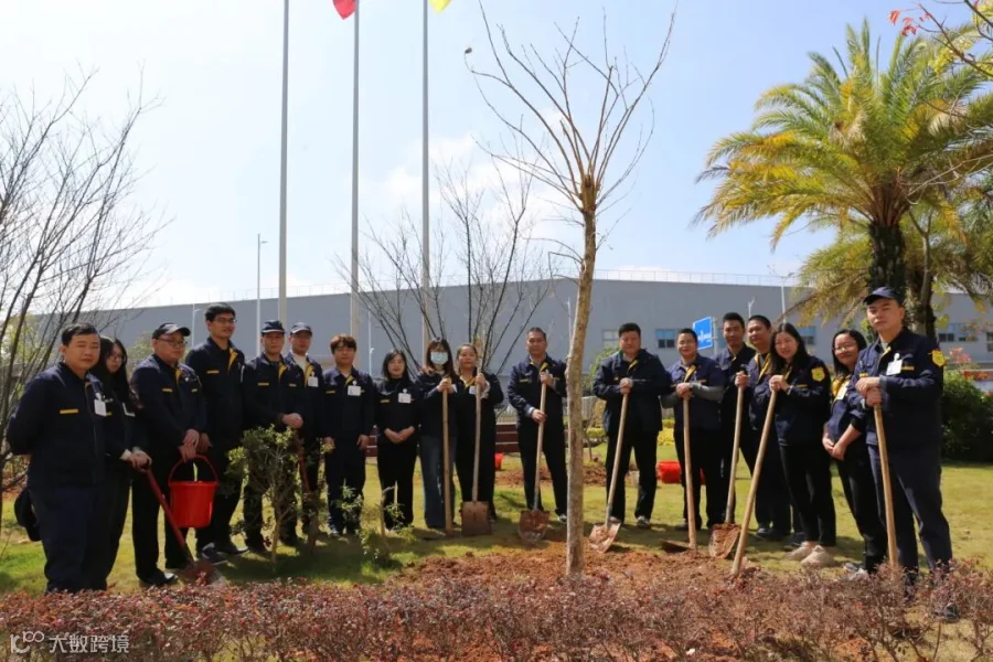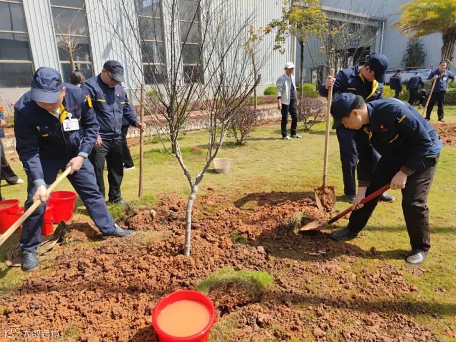 在活动现场,大家分工协作、干劲十足,挥锹铲土、扶树入坑、培实新土、提桶浇水,各个环节衔接有序、配合默契,现场一片热火朝天。在和煦的春风中,新栽的树苗迎风挺立,错落有致,为厂区增添一片充满生机与希望的新绿。