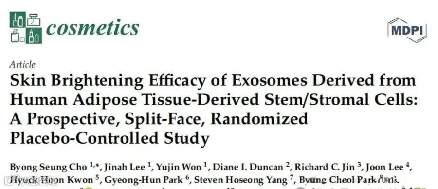 由韩国ExoCoBio外泌体研究所、韩国中央大学医学院皮肤科和美国关岛皮肤病研究所共同进行的一项试验,证实了人间充质干细胞来源的外泌体具有体外抗色素沉着作用和体内亮肤功效。相关研究成果发表在国际学术期刊《Cosmetics》上。