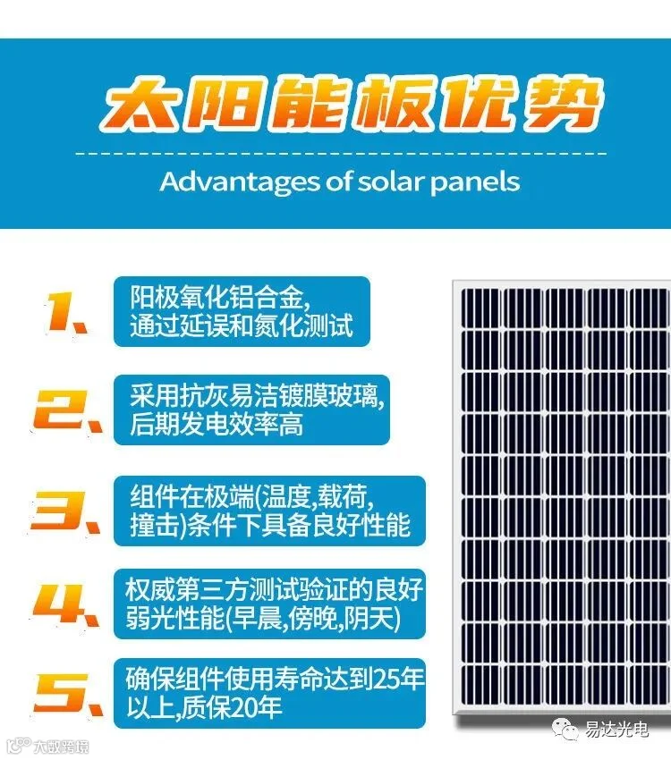 高效的光伏电池板技术:其单晶高效太阳能电池板光电转换效率高,在额定条件下入射光的转换效率高,部分高端产品光电转换效率更高,且在弱光条件下也能有效发电,性能稳定。
